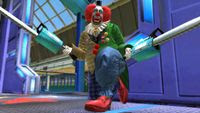 Holy crap in a hat, I’m surrounded by killer zombies and we don’t know how many humans are actually around so any other live face would be a blessing right? WRONG! How about coming face to face with this Psychopath, driven to insanity after he witnesses the gruesome deaths and zombification of his audience of children, and now he holds a serious grudge. Adam dies in a rather gruesome manner falling on top of his chainsaws, laughing all the while as the two chainsaws rip his stomach apart. And the scary part is, in all his insanity, it turns out that his warnings were right.